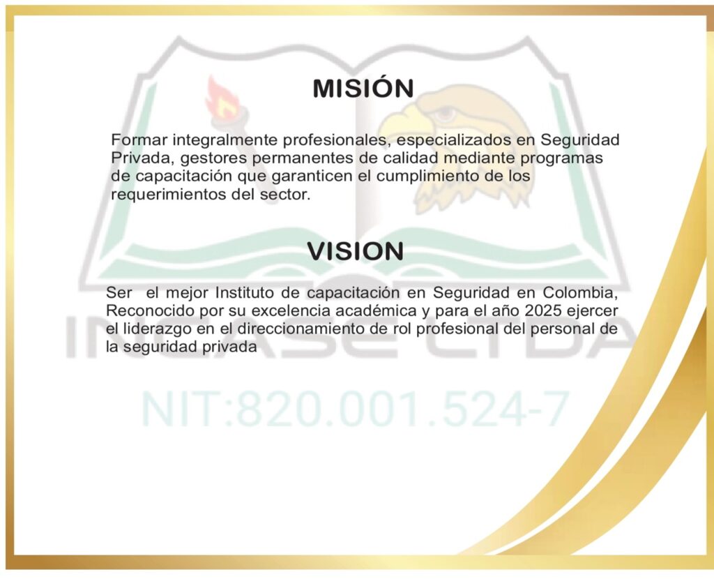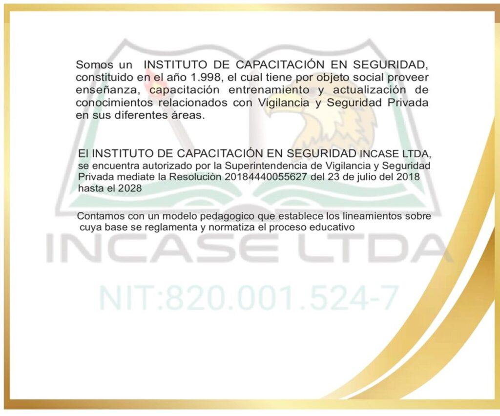 Fundamentación, Re-entrenamiento, especialización y profundización para Vigilantes. Ambientar al futuro vigilante a las normas, principios éticos y morales como a la organización de la Seguridad Privada en Colombia. Obtenga información necesaria en cuanto a la normalidad y leyes vigentes en seguridad privada
